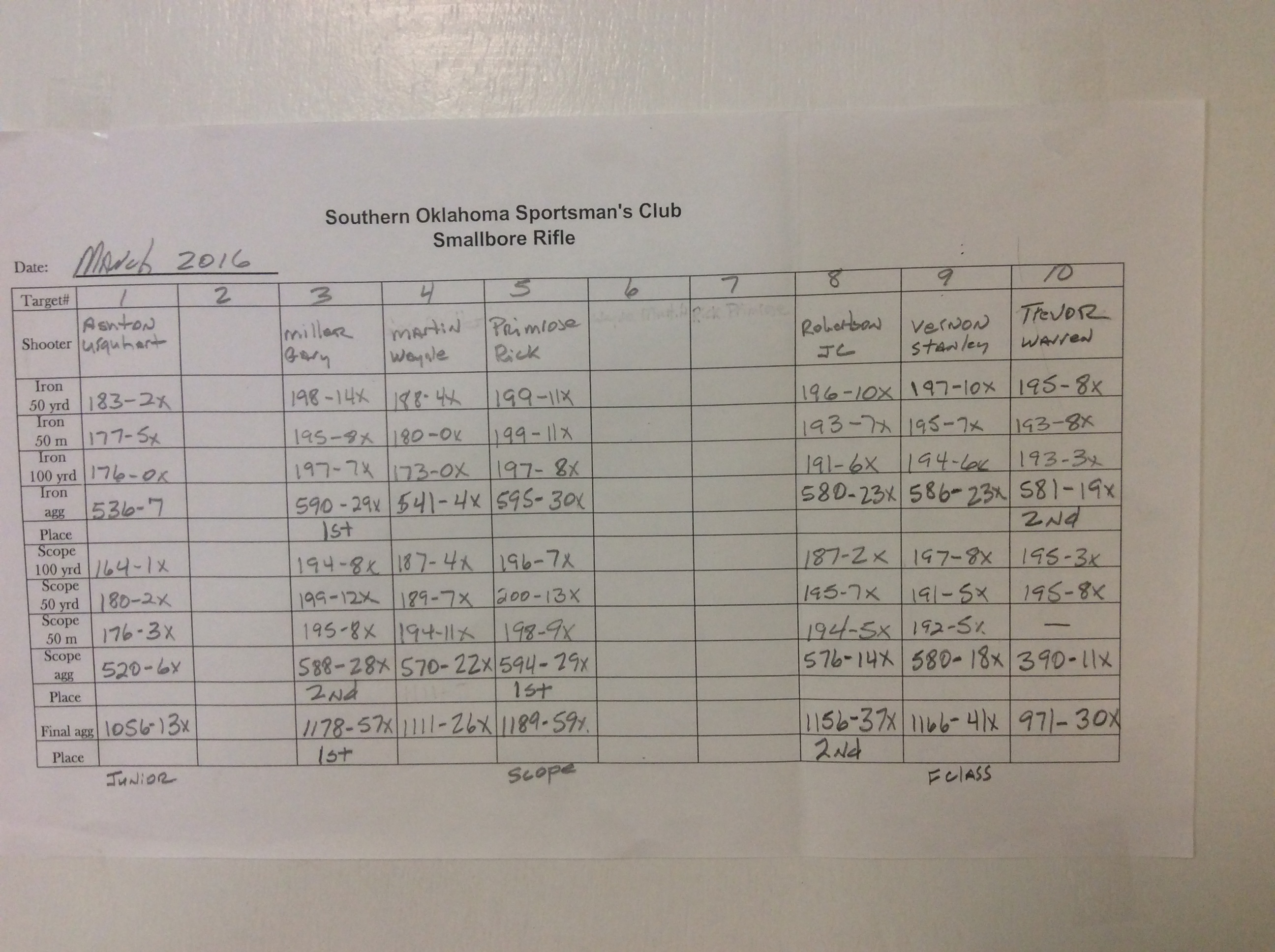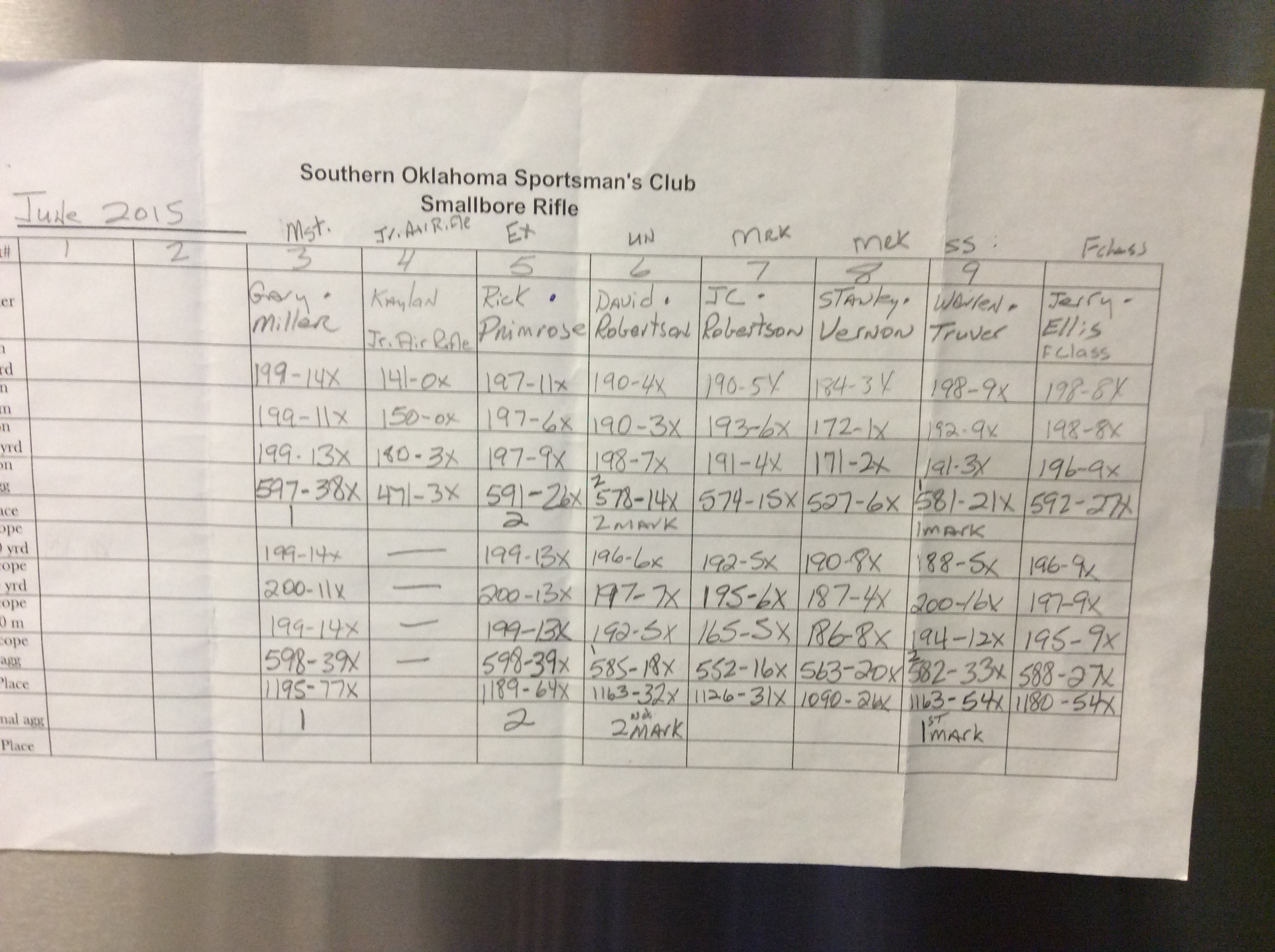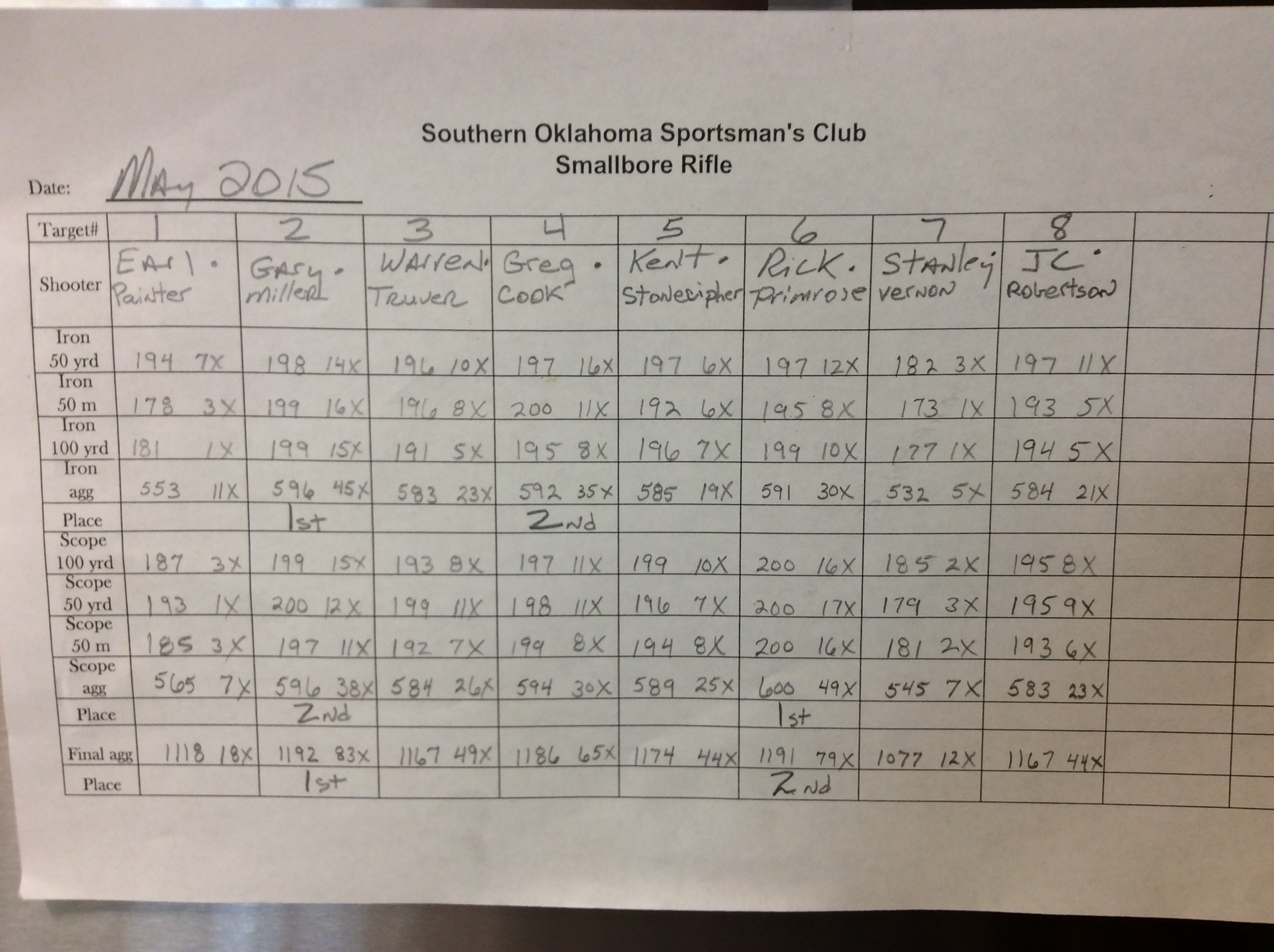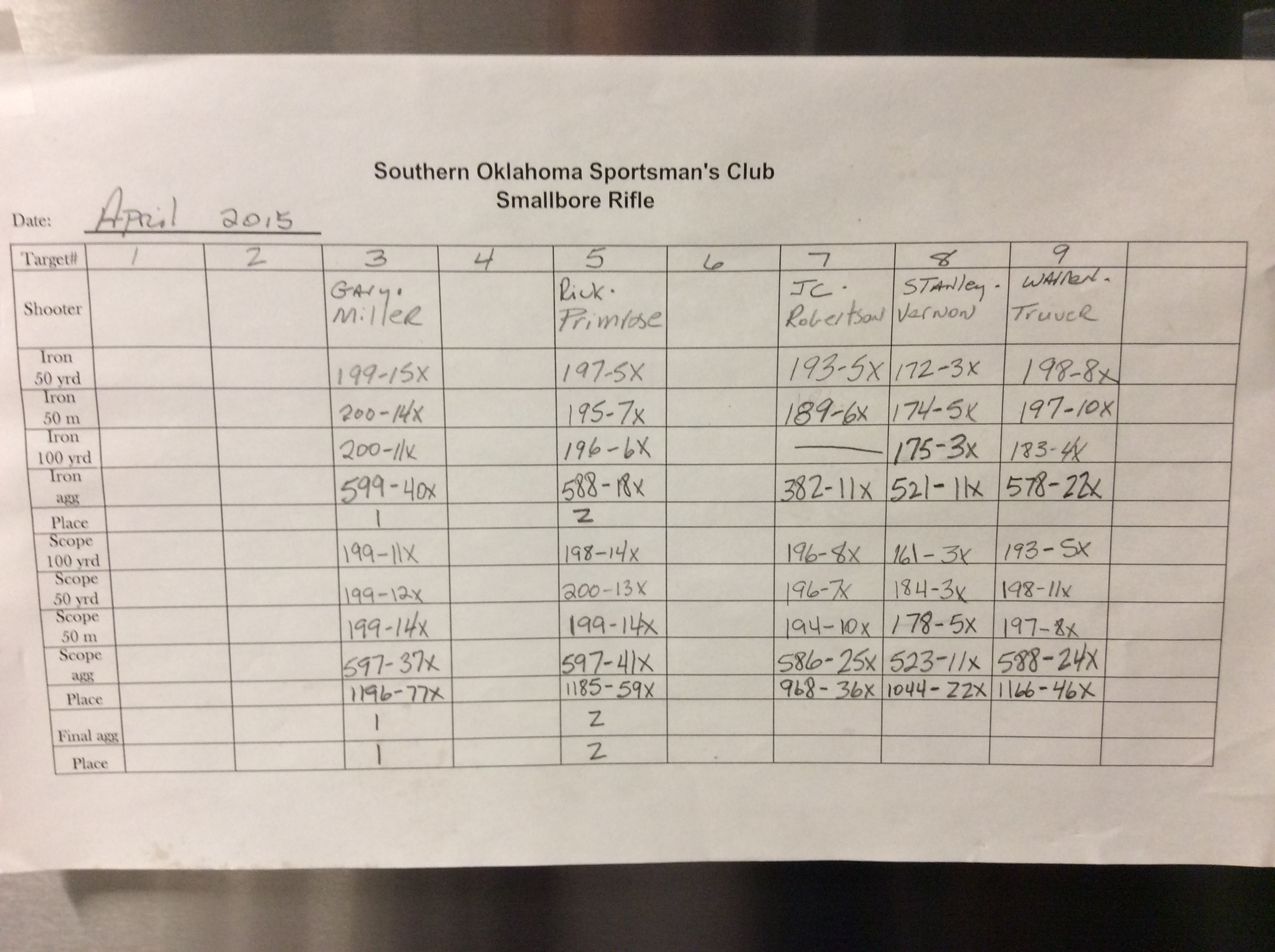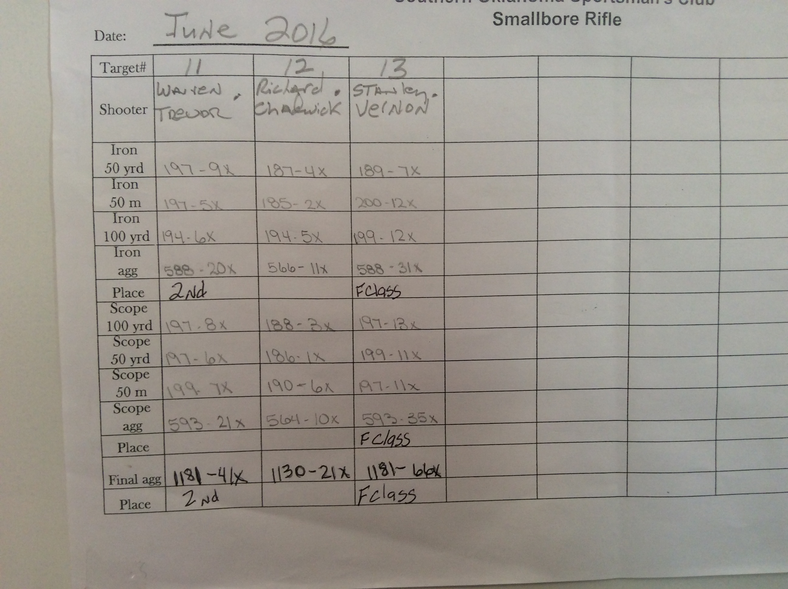 Smallbore Rifle Match Results – June 2016 Part 1 Part 2